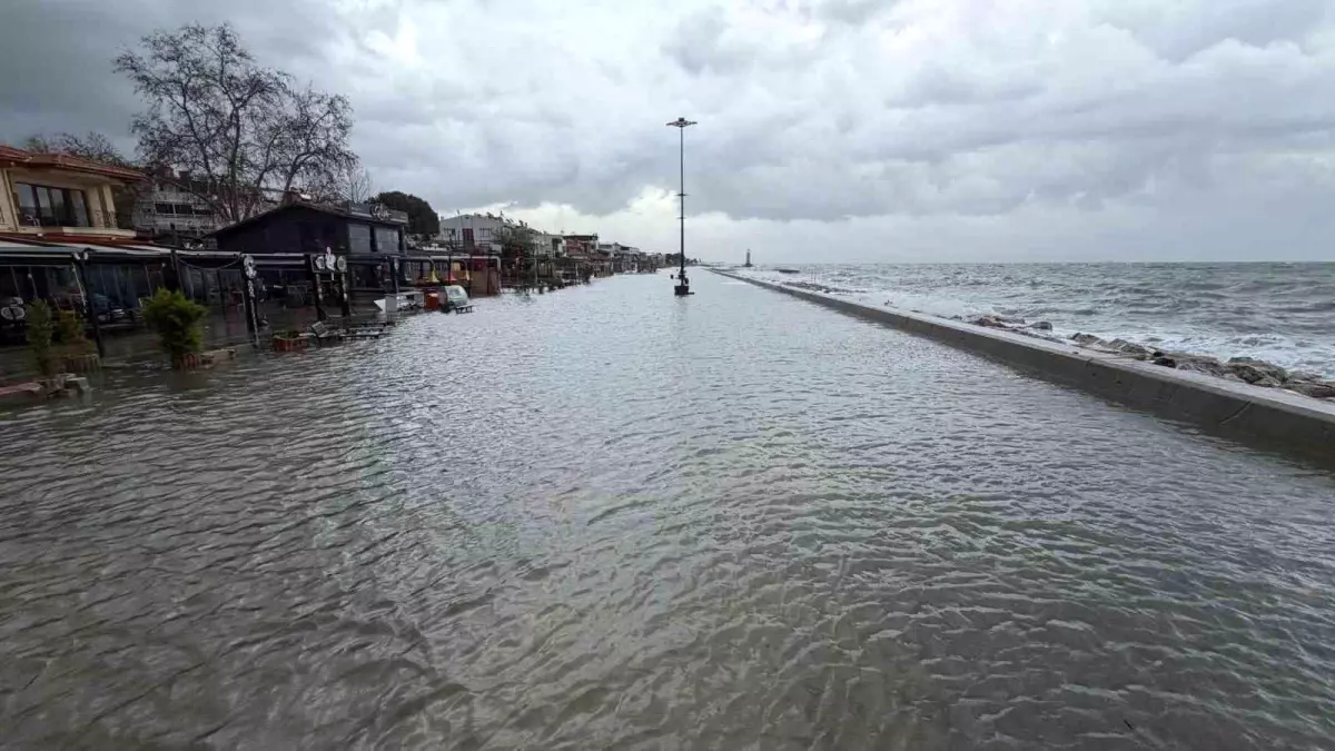 Balıkesir’in Edremit ilçesinde 90 km/s hızla esen lodos fırtınası, deniz taşmasına ve hasara yol açtı.