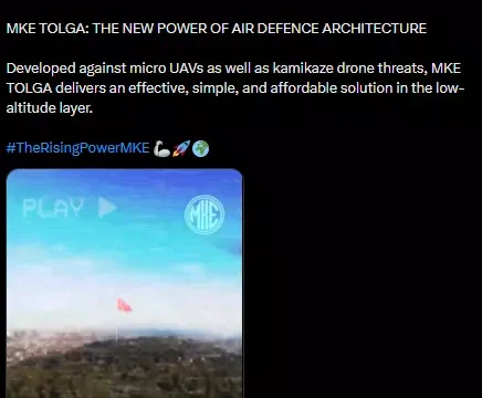 Makine ve Kimya Endüstrisi AŞ (MKE), TOLGA yakın hava savunma sisteminin, İHA’lar ve kamikaze dronlarını etkisiz kıldığına…