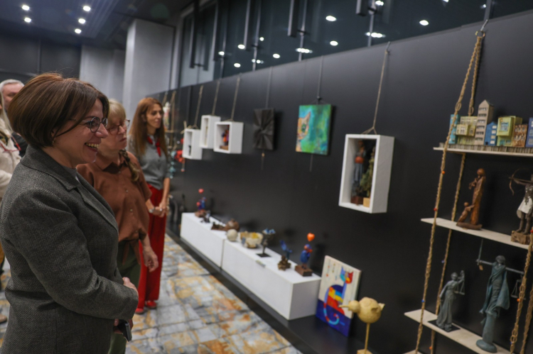Maltepe Belediye Başkanı Mimar Esin Köymen, sergiyi ziyaret ederek Sija Zobi’den eserlerinin yapım süreciyle ilgili detaylı bilgi aldı.