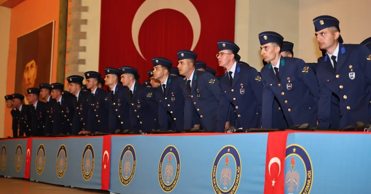 KÜTAHYA (İGFA) – Kütahya Hava Er Eğitim Tugay Komutanlığı Tuğgeneral Hikmet Erkuş Sinema Salonu’nda gerçekleştirilen törende, eğitimlerini tamamlayan yedek subay adayları; sancağın tanıtılması, saygı duruşu ve İstiklal Marşı’nın okunmasının ardından Türk Bayrağı ve silah üzerine el basarak yemin etti.